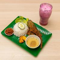 Ayam yang diperap & dimasak beberapa jam dengan menggunakan rempah rempah khas dari rumah ayam penyet serta sambal penyet yang menjadi pelengkap kebangkitan selera anda untuk menikmati ayam penyet terbaik dari kami. Set Ayam Penyet didatangkan dengan Nasi Putih bersama pasanga...