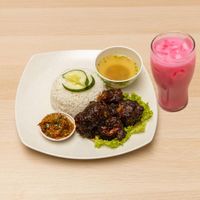 Ayam yang diperap & dimasak beberapa jam dengan menggunakan rempah rempah khas dari rumah ayam penyet serta sambal penyet yang menjadi pelengkap kebangkitan selera anda untuk menikmati ayam penyet terbaik dari kami. Set Ayam Penyet didatangkan dengan Nasi Putih bersama pasanga...